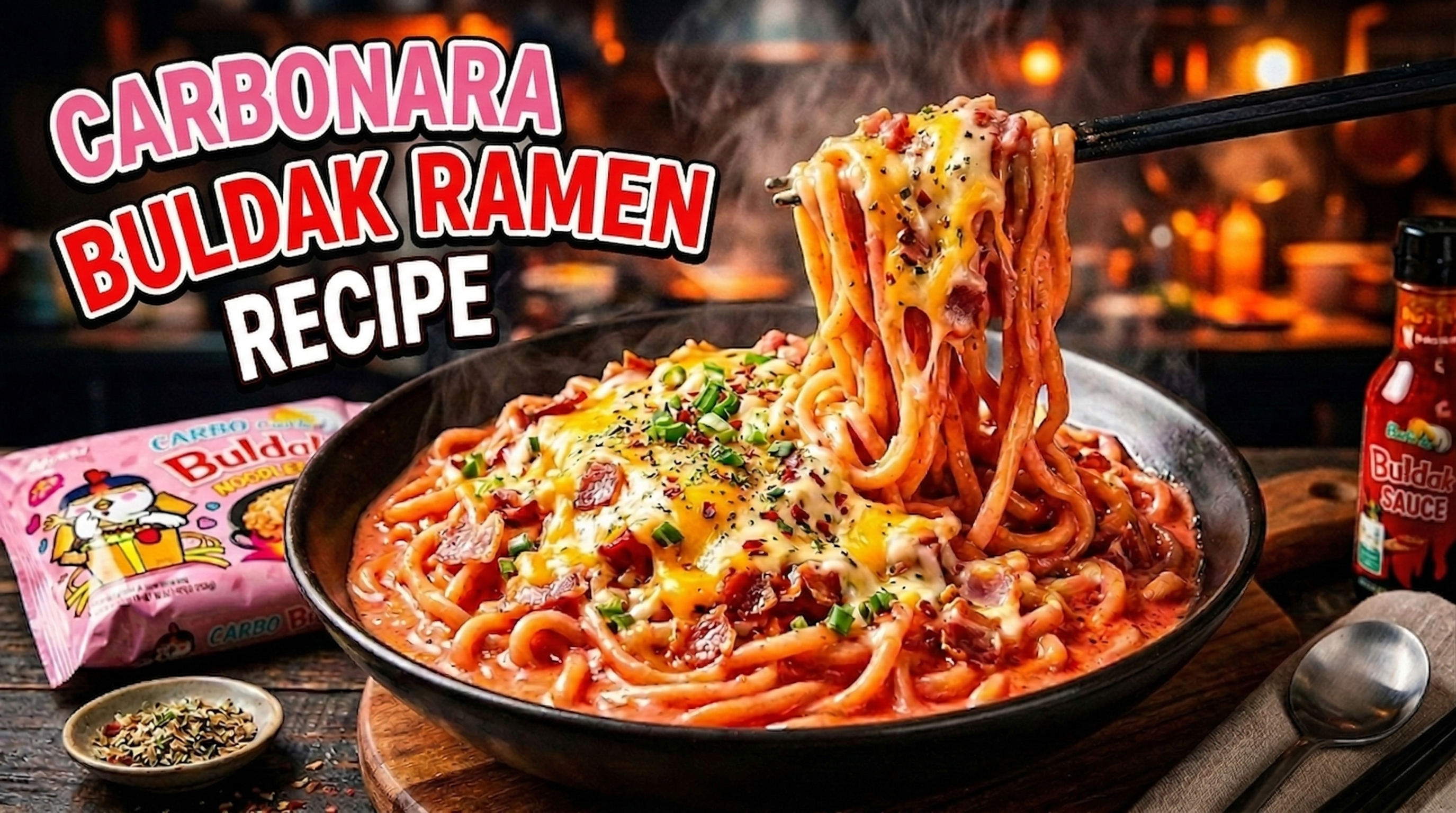 Samyang's Carbonara Buldak is a fusion masterpiece that brings the creamy richness of Italian carbonara into Korea's beloved fire noodle universe.